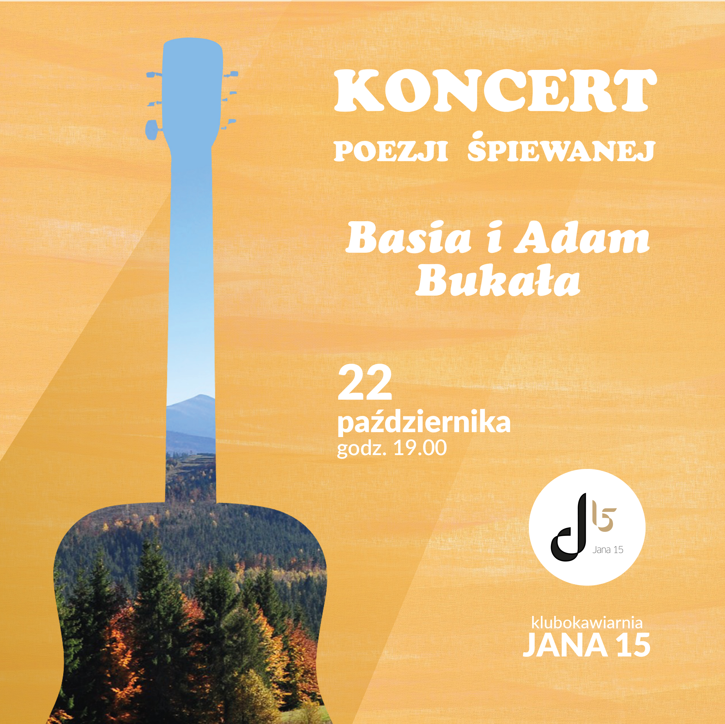 Zapraszamy na KONCERT POEZJI ŚPIEWANEJ 22 października o godz. 19.00 w klubokawiarni JANA 15 w Wodzisławiu Śl. Basia i Adam wprowadzą nas w poetycki świat wrażliwości m.in. Starego Dobrego Małżeństwa.